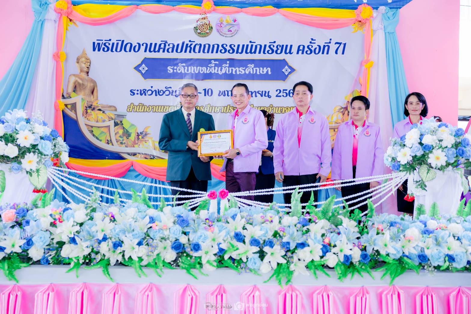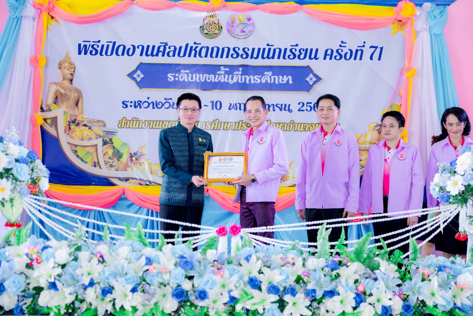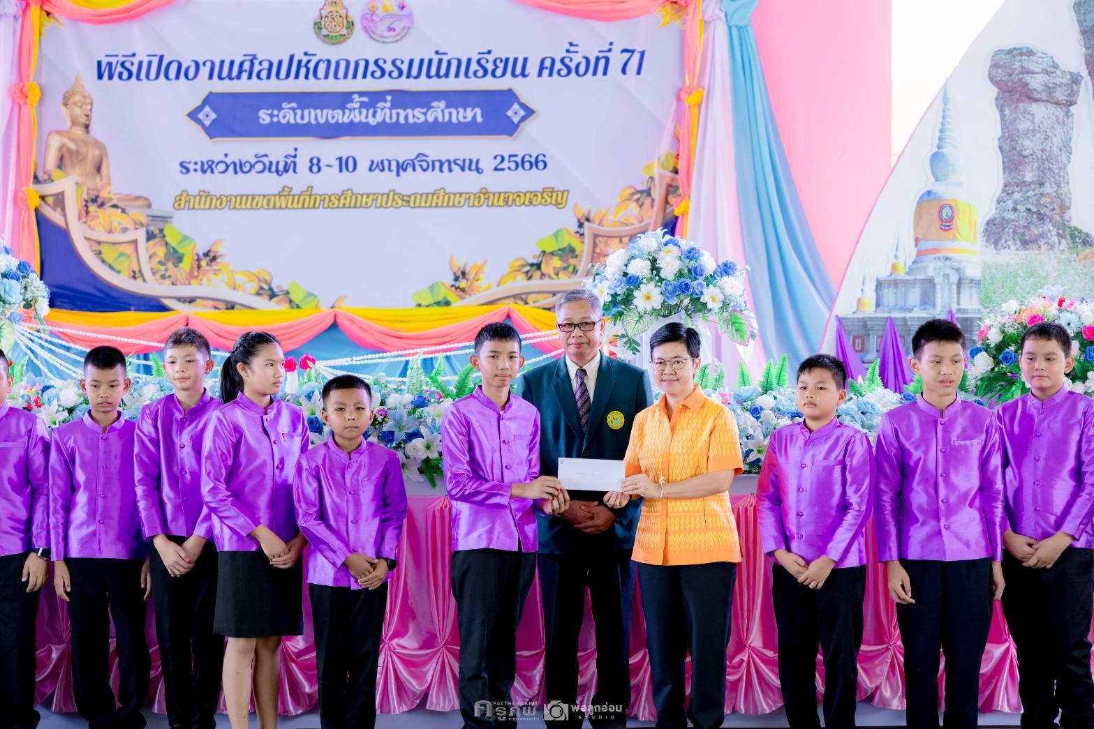นักเรียนโรงเรียนสาธิตเทศบาลเมืองอำนาจเจริญเข้าร่วมพิธีเปิดงานศิลปหัตถกรรมนักเรียน ครั้งที่ 71 ระดับเขตพื้นที่การศึกษา ระหว่างวันที่ 8 - 10 พฤศจิกายน 2566 สำนักงานเขตพื้นที่การศึกษาประถมศึกษาอำนาจเจริญ